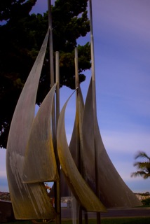 In June 1965, a committee headed by Ross Harris was formed to plan the design and construction of the Bowen Memorial. Russell Forrester, A.I.A., designed the sculpture and Gene Weston of MBYC designed the reflecting pool. Commodore Les Marshall coordinated all phases of the design and construction. Financing was accomplished through the donations of the membership. The fountain is an artistic symbol of two beautiful people who meant a great deal to Mission Bay Yacht Club.